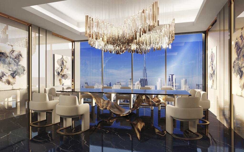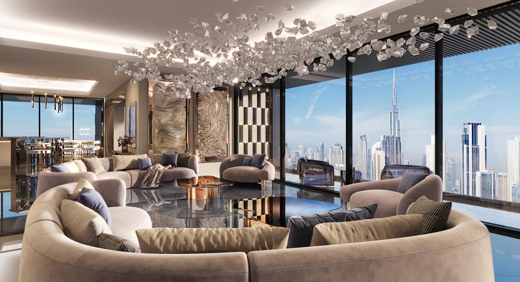 SKY mansion on half floor with 6 luxury bedrooms. The Fleur DE Jardin Sky Mansion - an exceptional residence named after the iconic Fleur DE Jardin watch by Jacob and Co. This magnificent mansion offers a truly luxurious living experience in the heart of Dubai. Boasting six spacious and opulent bedrooms, the Fleur DE Jardin Sky Mansion occupies a full half-floor space spanning from levels 83 - 96, offering breathtaking 180- degree panoramic views of the city from every angle. Within this premium collection, there are two types of sky mansions, each designed to cater to your unique preferences. The first type treats you to an awe-inspiring view of the world famous Burj Khalifa, while the second type offers a panoramic vista of the waters of the Creek Harbor and the vibrant Dubai skyline. Luxurious amenities and exquisite attention to detail are the hallmarks of the Fleur DE Jardin Sky Mansion, making it the ultimate choice for those who demand the very best. From the finest materials and finishes, every aspect of this magnificent residence has been meticulously crafted to exceed your expectations