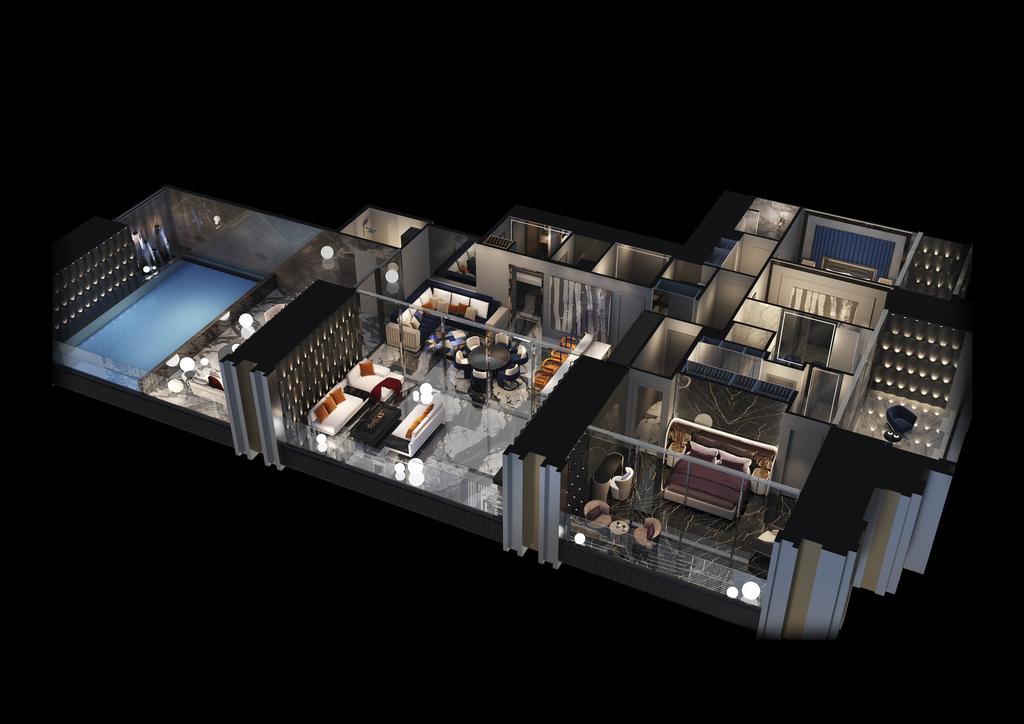 High-end dual bedroom suites on a quarter floor (with exclusive study and storage room) The Sapphire Villa is an exceptional collection of two-bedroom luxury units that have been thoughtfully designed to meet every need. With spacious interiors that include a study/maid room and an additional storage area, the Sapphire Wing offers a truly premium living experience. Within this exclusive collection, you’ll find two-unit types, each offering a unique perspective on the magnificent cityscape of Dubai. The first unit type boasts a stunning side view of downtown Dubai and the iconic Burj Khalifa, while the second type treats you to the Creek Harbor and the Dubai Design District.